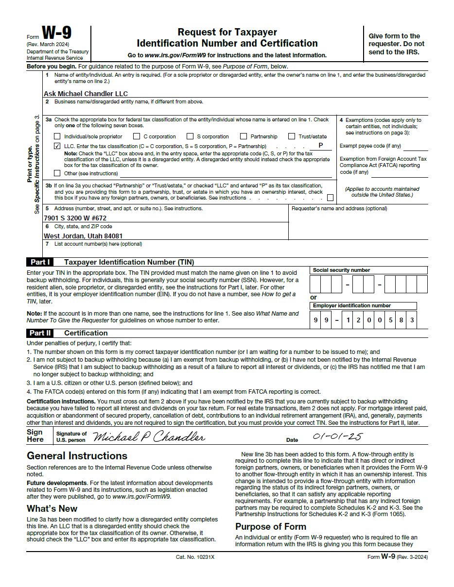 If your CPA requires a W9 for your tax filing you can download or print it here. Alternatively, input an email address and we will send you a copy electronically.